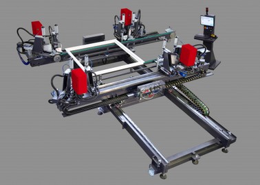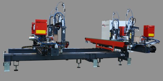 4 fejes CNC hegesztőgép 3 vezérelt tengellyel, a PVC keret négy sarkának vízszintes és egyidejű hegesztésére tervezték ; biztosítja a vázgyártót állandó működési minőséggel az idő múlásával .