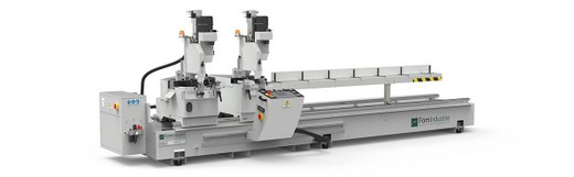 Kettős fejű fűrészgép ø 550 mm-es volfrámkarbid pengével, a mozgó fej motoros mozgatásával és a fej dőlésének elektropneumatikus vezérlésével Kapható 4 - az 5. és 6,6 verzió