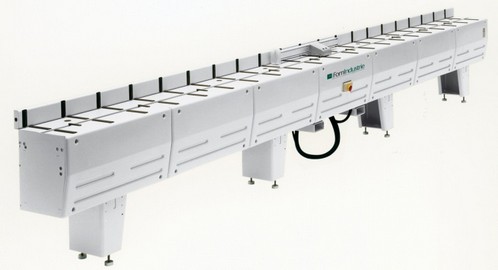 Görgős asztal elektronikus motoros hossz-ütköző pozícionálás vezérléssel (automatikus vágószalagokhoz)