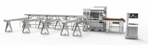 The system, which is fully numerically controlled, cuts the elements with a bar feeder and a saw with a front blade exit. There are 4 different versions that can be configured according to the depth and length of the material loading / unloading bins, the right / left feed direction and the type of cutting unit.