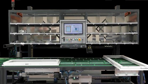Systém sa skladá z automatického zásobníka na vkladanie vyrezaných profilov, ktorý dodáva viacvretenový obrábací modul pomocou PVC alebo kovových výstužných nástrojov pomocou lineárneho motorom ovládaného CNC drapáka, ktorý zaručuje opracovanie profilu na oboch stranách profilu, vrátane tých náchylných na