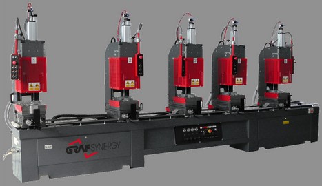 Vysoko presný stroj, ktorý umožňuje súčasné zváranie uhlov 90 ° a krížov „T“, krížov alebo „H“ (v ľubovoľnej kombinácii) a zváranie s variabilným uhlom medzi 35 ° a 180 ° v jednom pracovnom cykle.