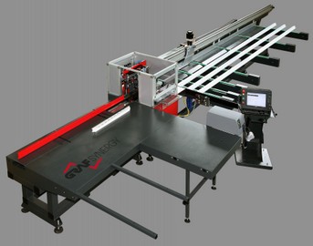 CNC vágóközpont 3 vezérelt tengellyel, amely a PVC profilok gyors és optimális vágásának elvégzésére szolgál .
