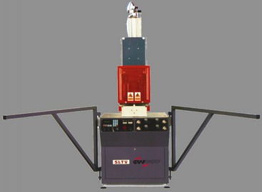 Hegesztőgép nagyon nagy pontosságú hegesztő rendszerrel, 30 ° és 180 ° közötti változtatható szöggel, nagy szelvényprofilok hegesztésére, akár 200 x 200 mm 90 ° -on .