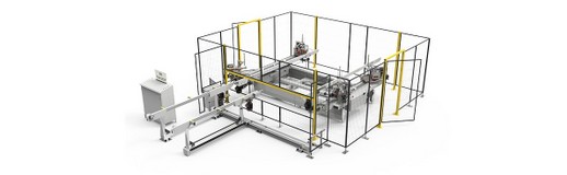 4 fejes tengelyű krimpelőgép vezérelt szerszámpozicionálással és automatikus be- / kirakóasztallal