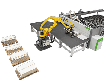 Olyan vágórendszerek, amelyek két teljesen független vágószalagot kínálnak automatizált terheléssel, amelyek megfelelnek a bútor- és félkész termékek iparának követelményeinek